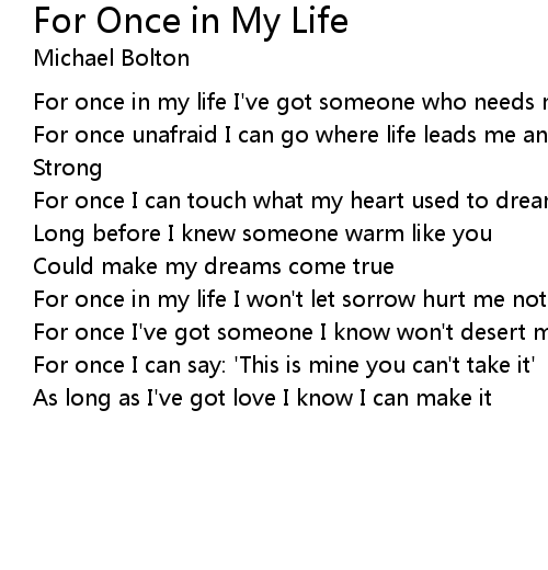 For once in my life I won't let sorrow hurt me not like it's hurt me before |