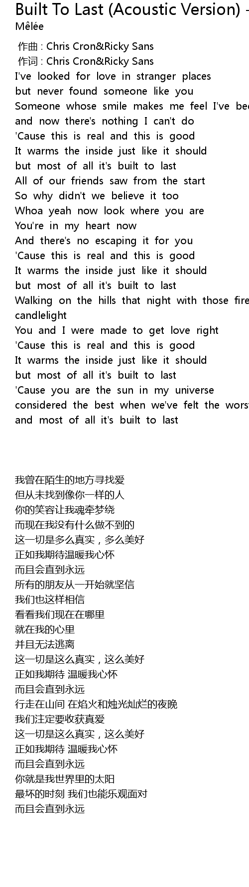 | [00:01.00] | 作词 : Chris Cron&Ricky Sans |