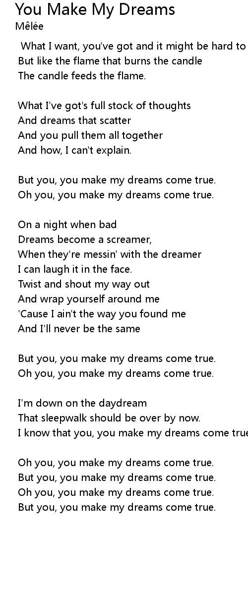 But you, you make my dreams come true. |