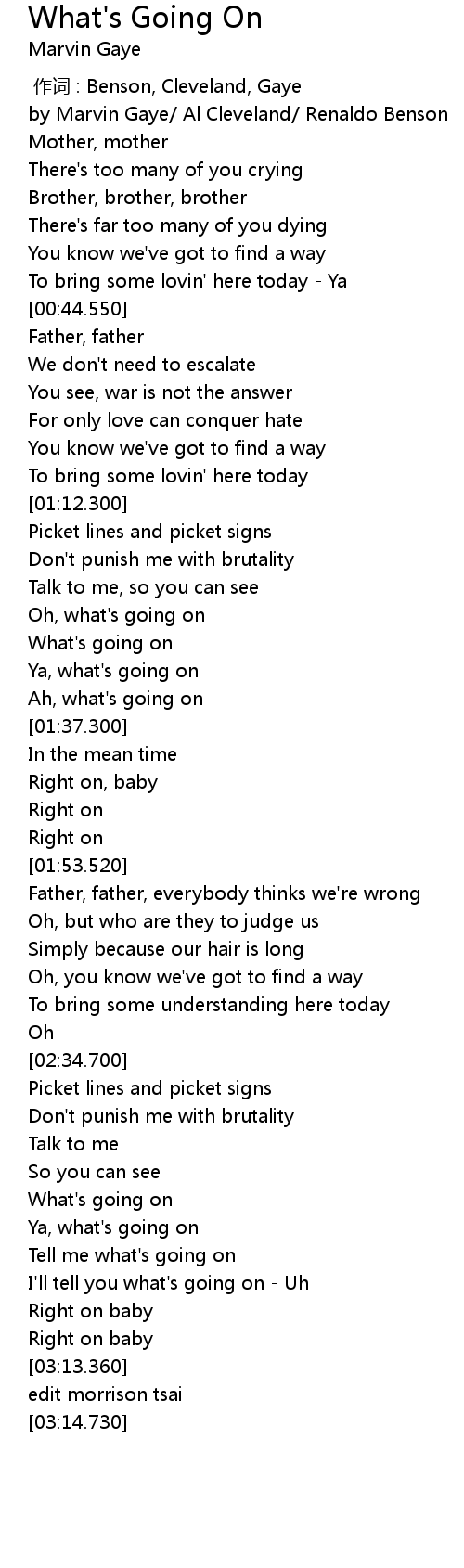 | [00:03.250] | by Marvin Gaye/ Al Cleveland/ Renaldo Benson |