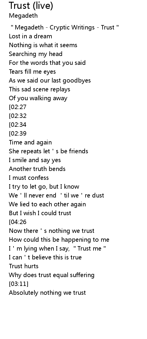 | [00:00] | "Megadeth - Cryptic Writings - Trust" |