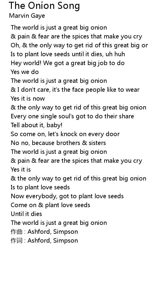 | [Both:] Oh, & the only way to get rid of this great big onion | |