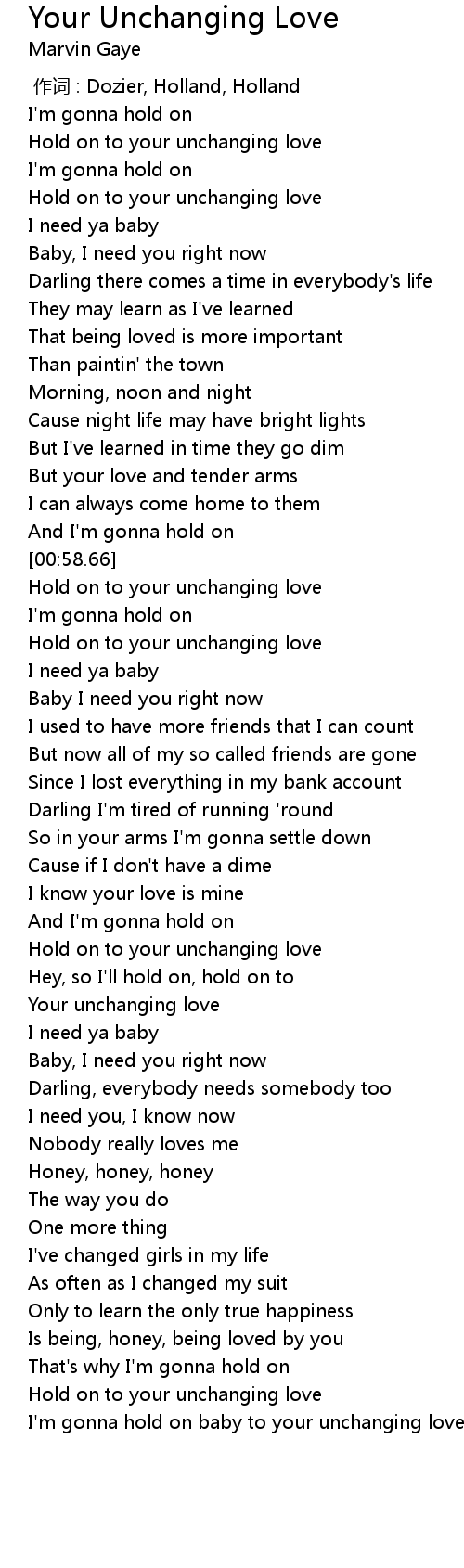 | [02:55.01] | I'm gonna hold on baby to your unchanging love |