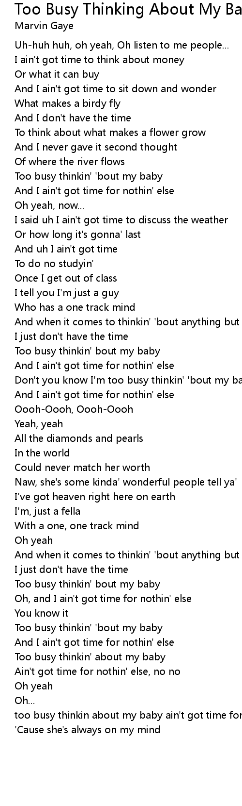 too busy thinkin about my baby ain't got time for nothin else no no |
