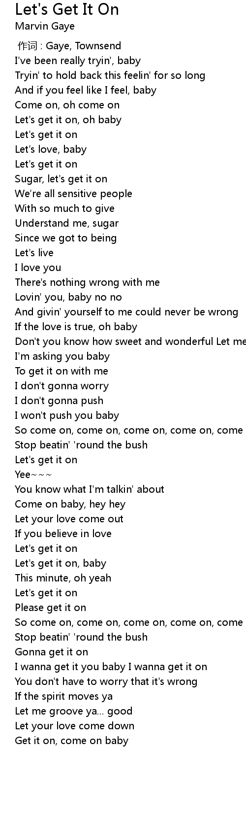 | [00:23.61] | Let's get it on, oh baby |