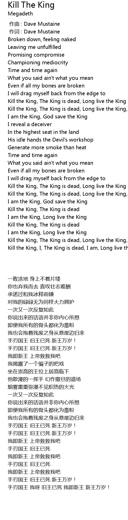 | [03:37.92] | Kill the King, I, The King is dead, I am, Long live the King |
