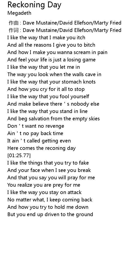 | [01:19.39] | Here comes the reconing day |