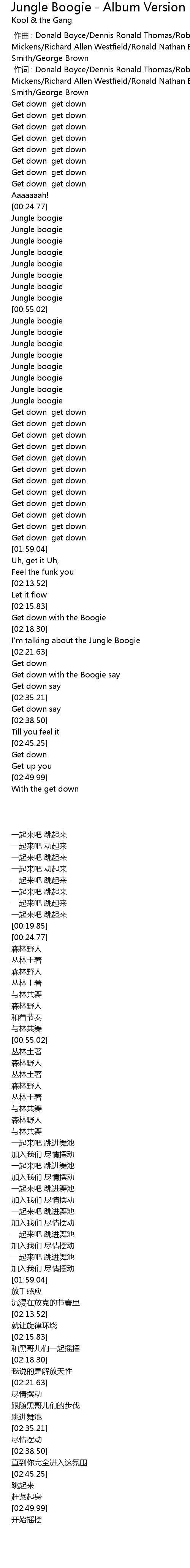 | [02:19.05] | I' m talking about the Jungle Boogie |