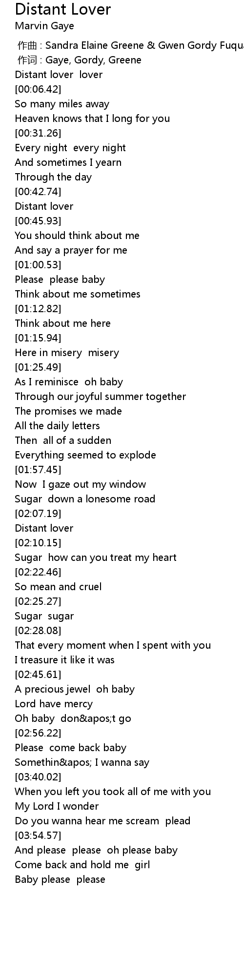 | [00:00.335] | 作词 : Gaye, Gordy, Greene |
