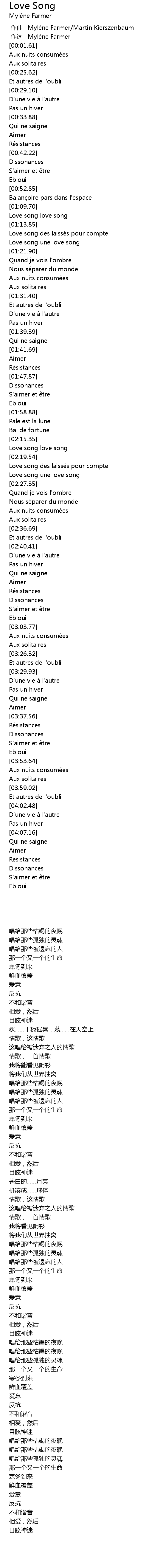 | [00:00.353] | zuo ci : Myle ne Farmer |