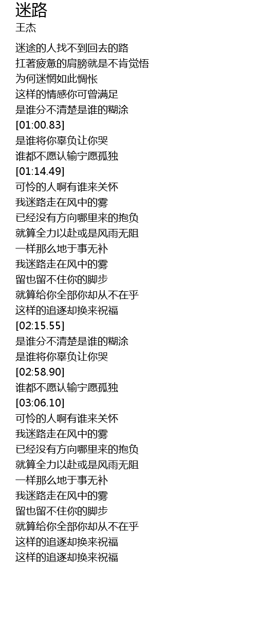 | [01:22.04] | wǒ mí lù zǒu zài fēng zhōng de wù |