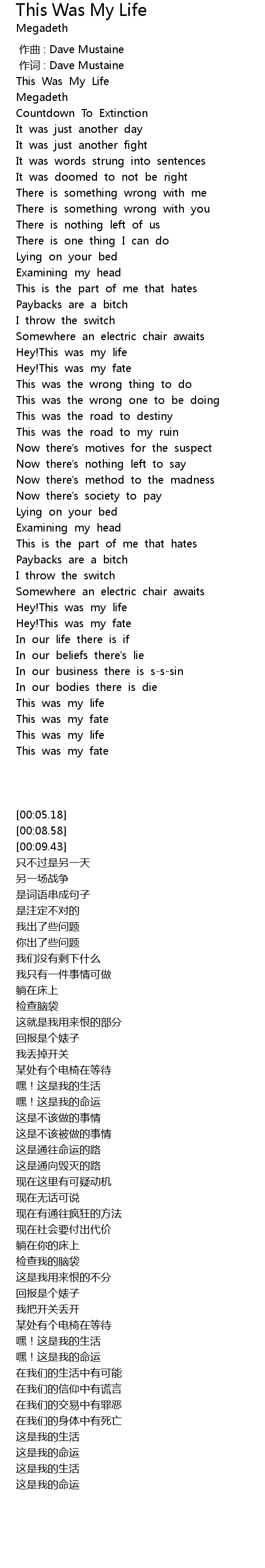 | [00:01.00] | zuò cí : Dave Mustaine |
