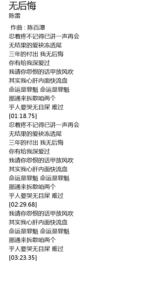 | [00:36.86] | sān nián de fù chū wǒ wú hòu huǐ |