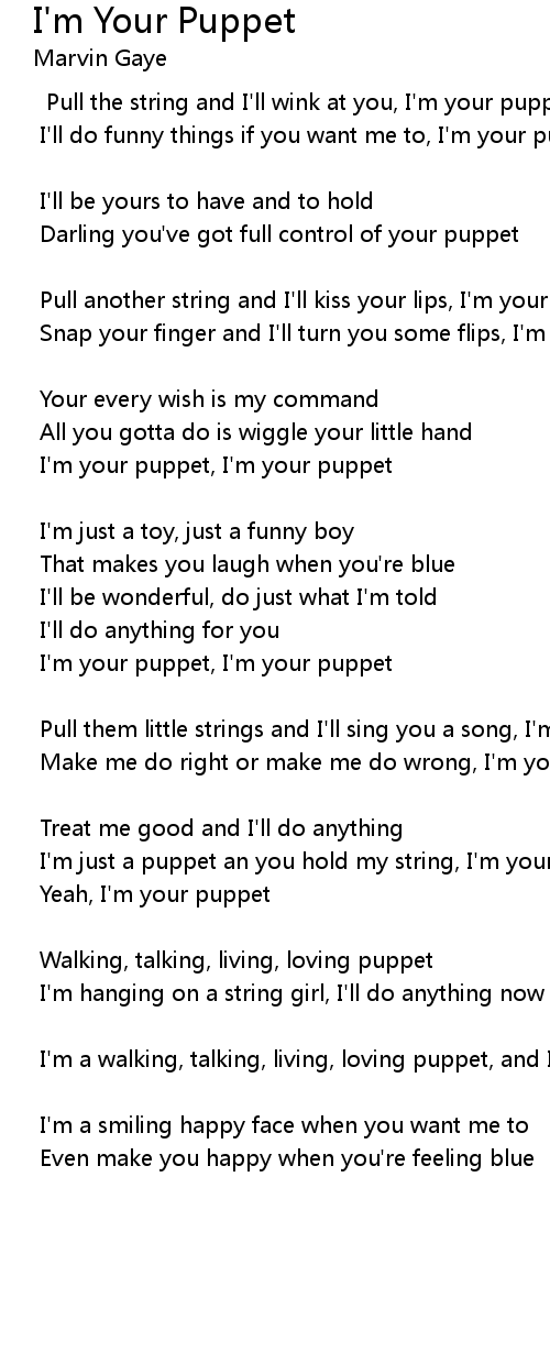 Pull them little strings and I'll sing you a song, I'm your puppet |