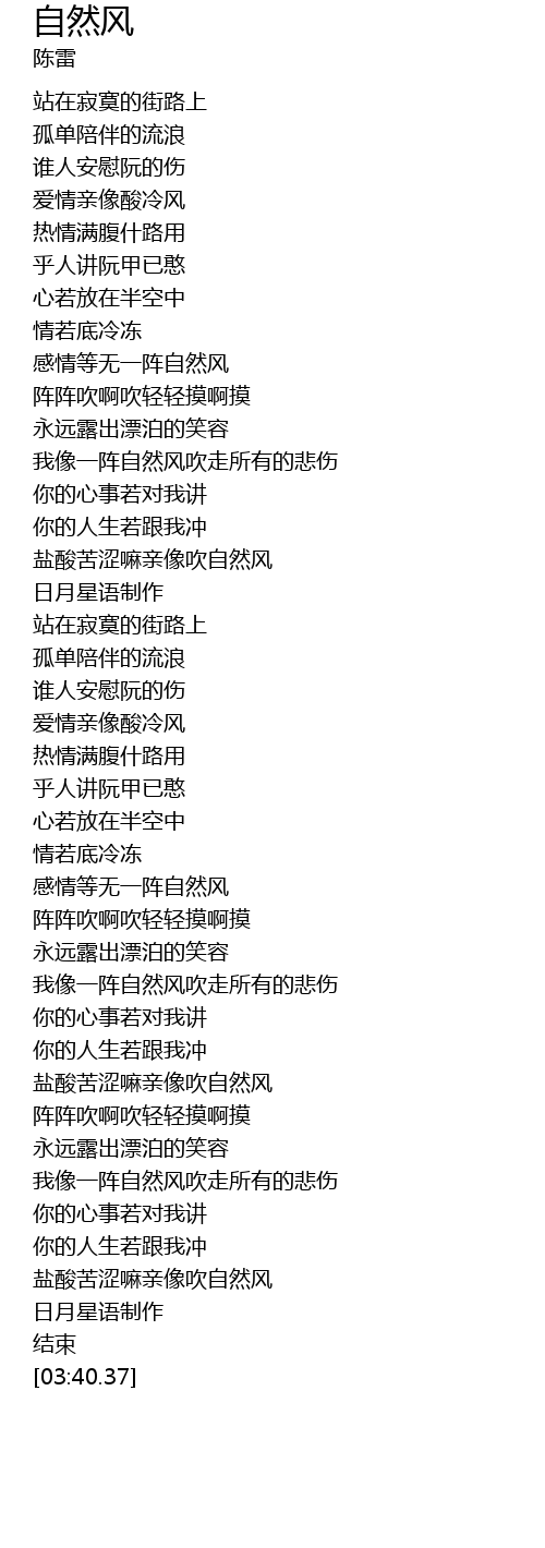 | [03:21.08] | 盐酸苦涩嘛亲像吹自然风 |