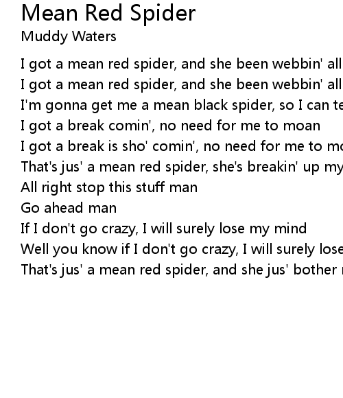 That's jus' a mean red spider, she's breakin' up my happy home |