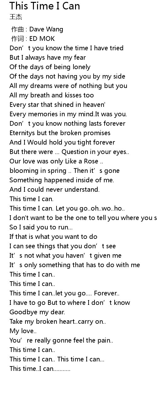 | [01:53.33] | This time I can. Let you go.. oh.. wo.. ho.. |
