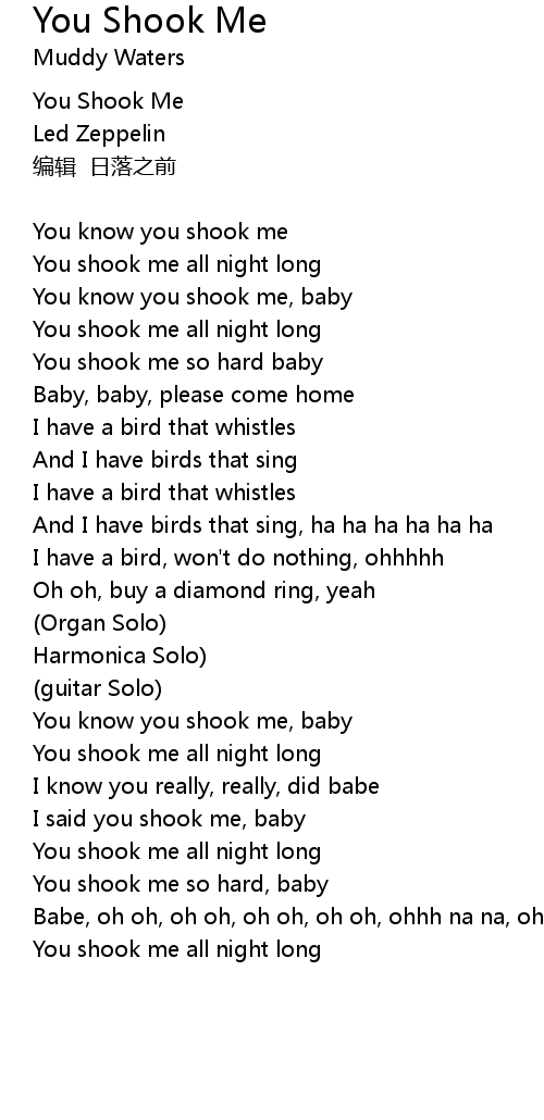 | Song | You Shook Me |