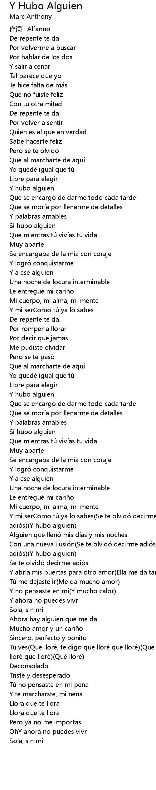 | Song | Y Hubo Alguien |