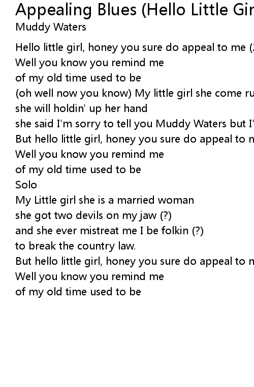Hello little girl, honey you sure do appeal to me (2x) |