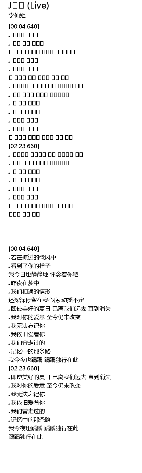 J 나의 사랑은 아직도 변함없는데 |