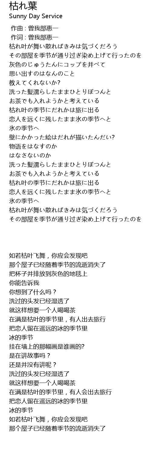 | [00:01.00] | 作词 : 曽我部恵一 |