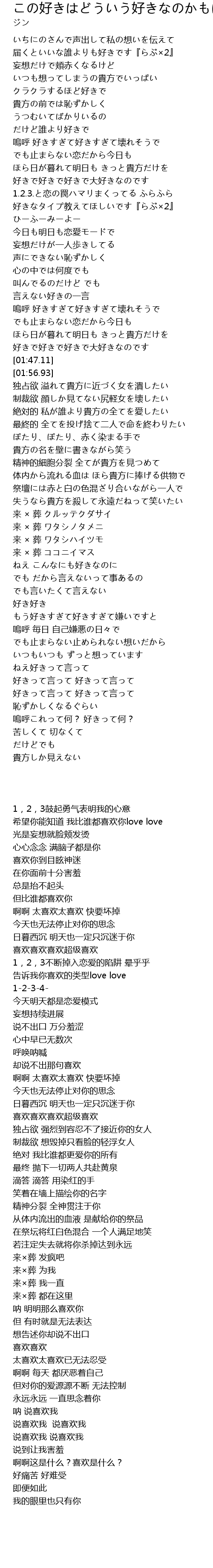 | [02:46.16] | 失うなら貴方を殺して永遠だねって笑いたい |