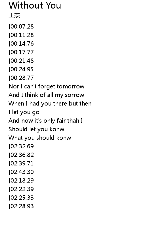 | [02:51.00][02:22.39][01:23.32] | if living is without you |