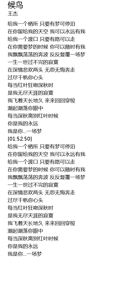 | [02:45.50] | 我飘飘荡荡的奔波 反反复覆一场梦 |
