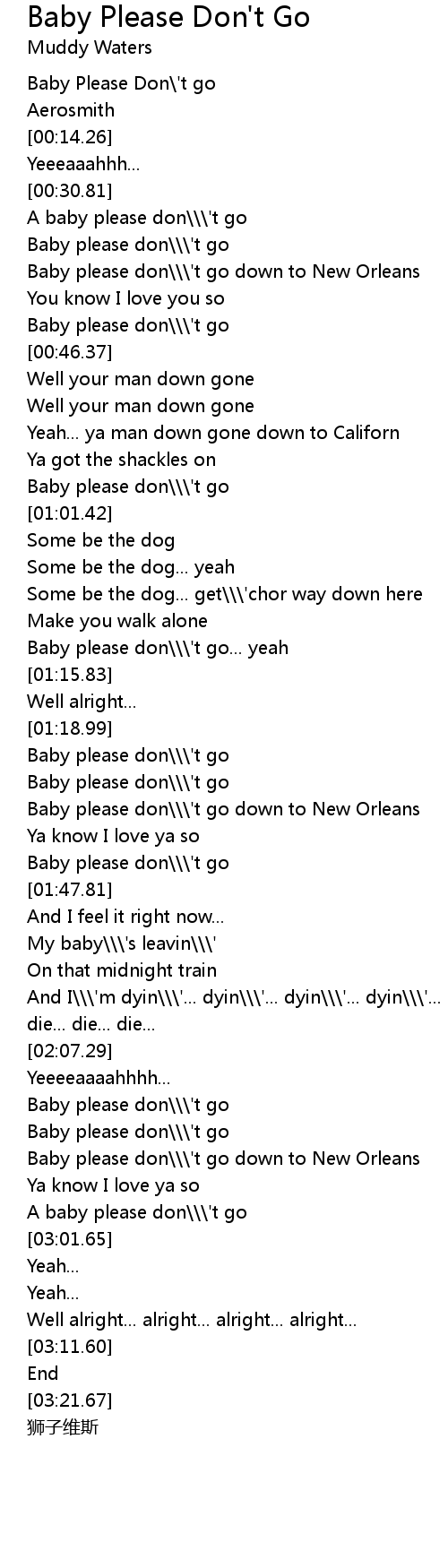 | [01:12.96] | Baby please don\\\'t go... yeah |