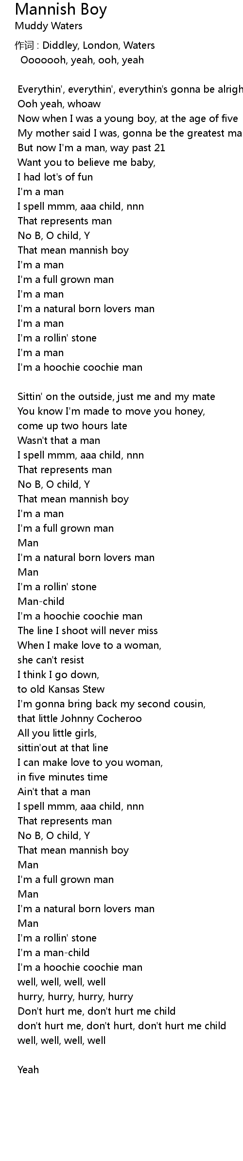 | 作词 : Diddley, London, Waters | |