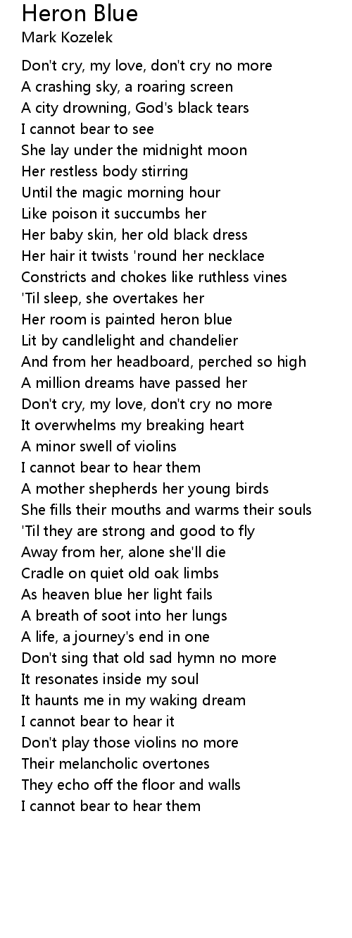 Don't cry, my love, don't cry no more |