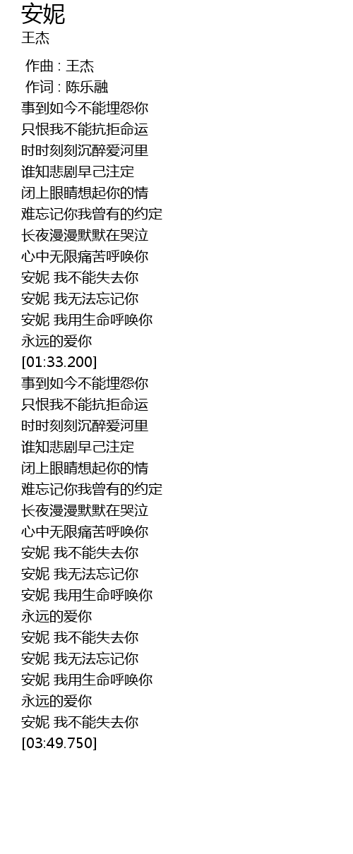 | [03:30.290] | 安妮 我用生命呼唤你 |