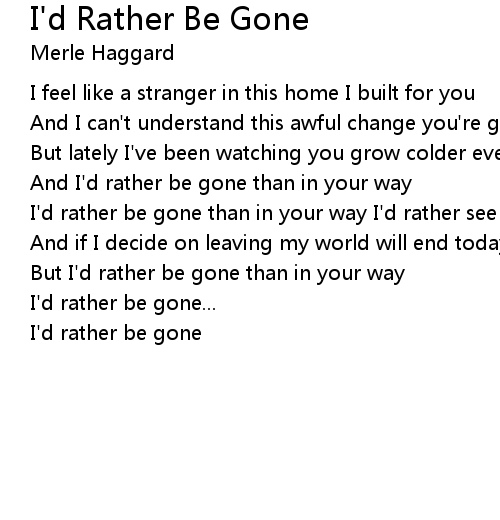 | I'd rather be gone |