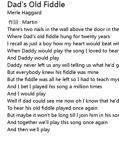 | [00:18.11] | Where Dad' s old fiddle hung for twenty years |