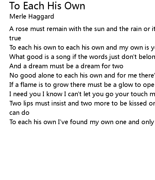 To each his own to each his own and my own is you |