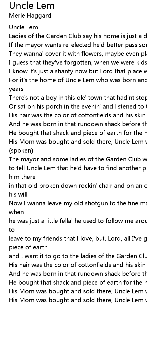 For it's the home of Uncle Lem who was born and raised and lived there ninety years |