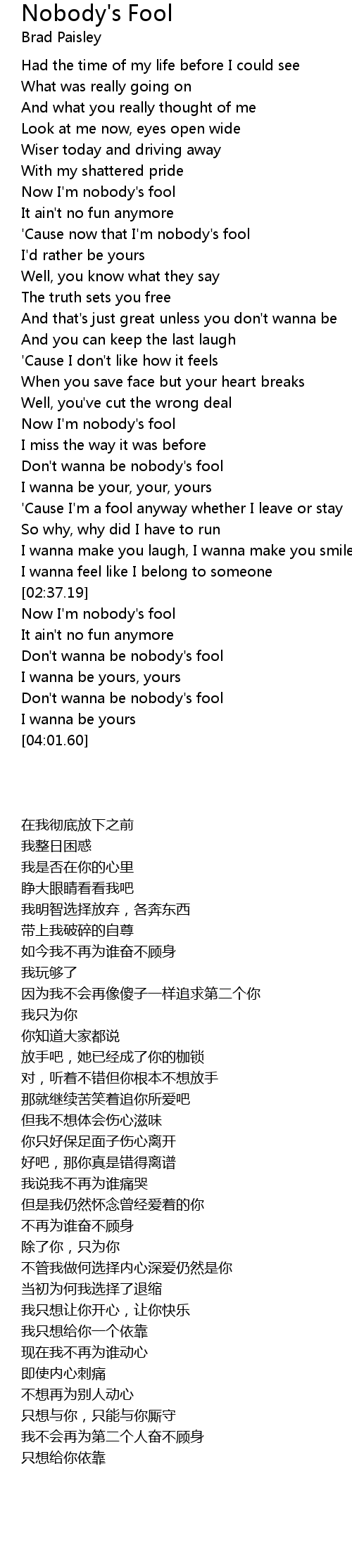 Now I'm nobody's fool |