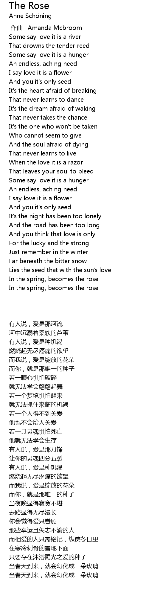 | [03:00.45] | In the spring, becomes the rose |
