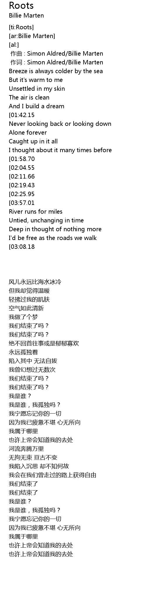 | [00:01.00] | zuò cí : Simon Aldred Billie Marten |