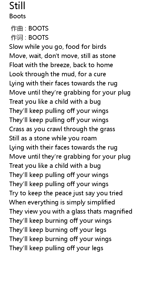 | [00:01.00] | zuò cí : BOOTS |