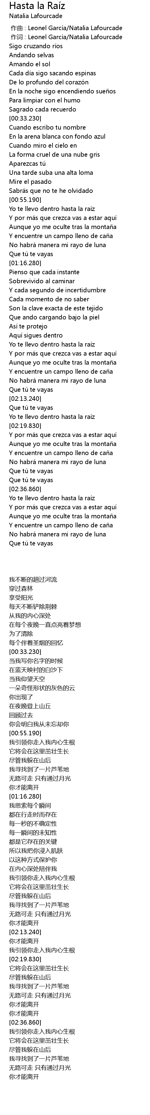 | [03:14.780] | Yo te llevo dentro hasta la raí z |