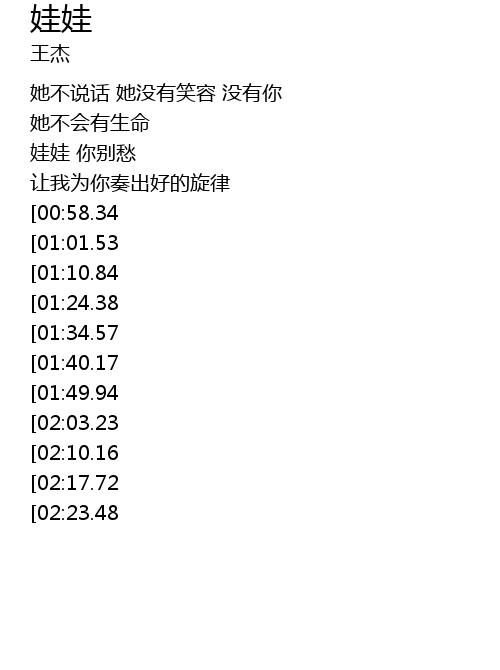 | [03:11.94][01:10.84] | 娃娃 娃娃 这就是我为你所取的名字 |