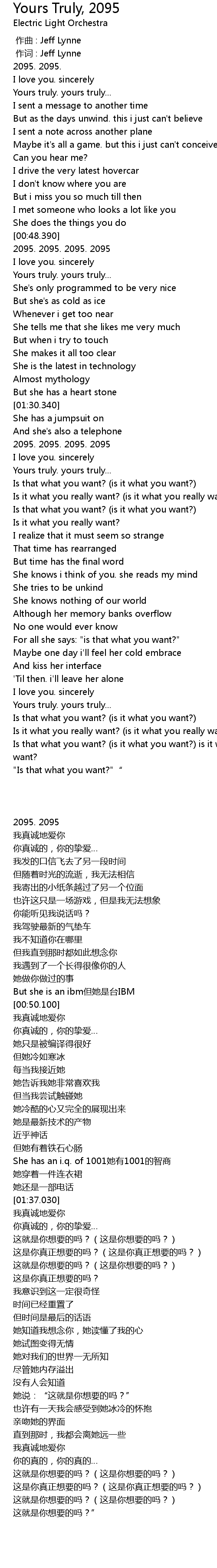 | [00:01.00] | zuò cí : Jeff Lynne |