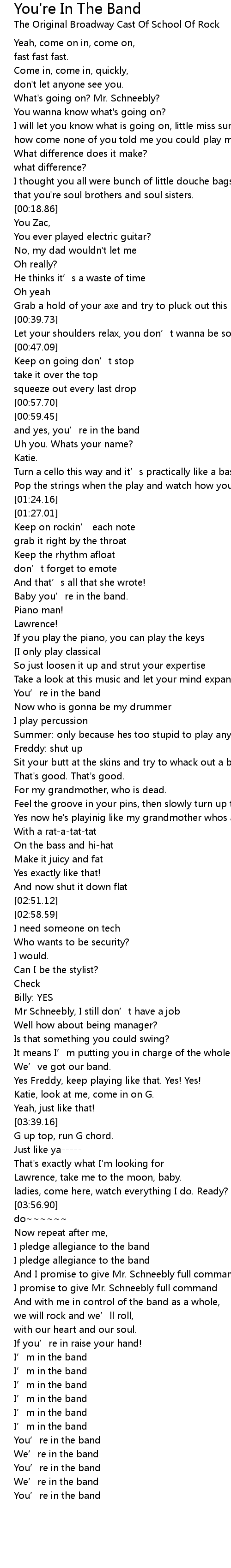 | [02:07.42] | You' re in the band |