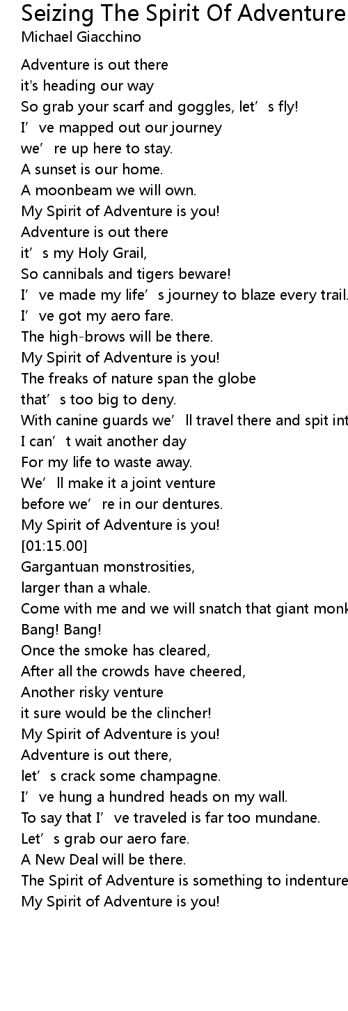 | [00:43.00] | My Spirit of Adventure is you! |