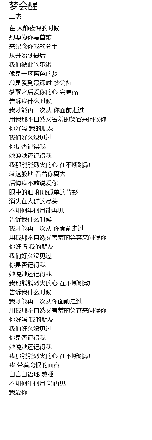 | [00:59.17] | zǒng shì ài dào zuì shēn shí mèng huì xǐng |