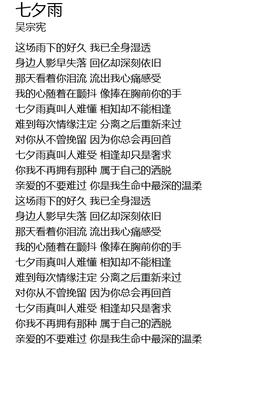| [01:32.329] | 七夕雨真叫人难受 相逢却只是奢求 |