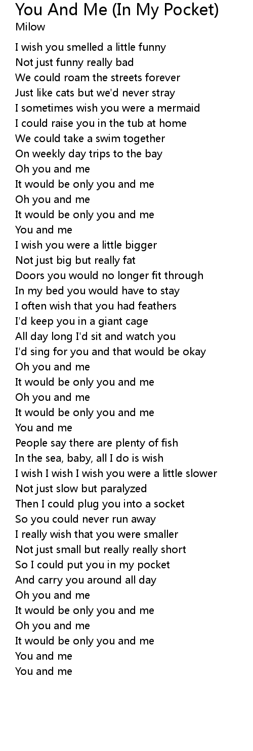 So I could put you in my pocket |