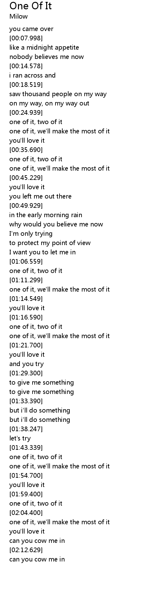 | [01:51.539] | one of it, two of it |